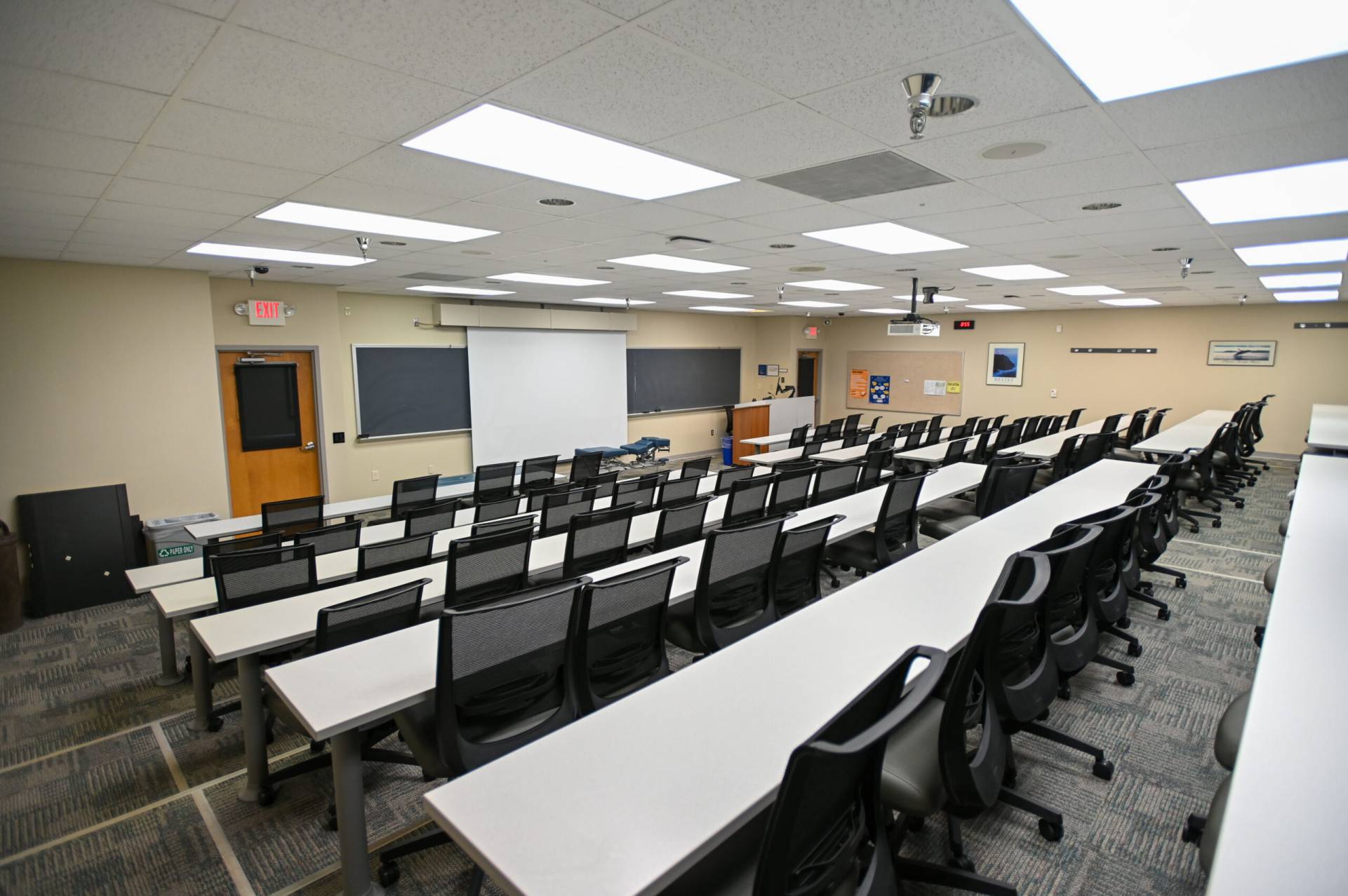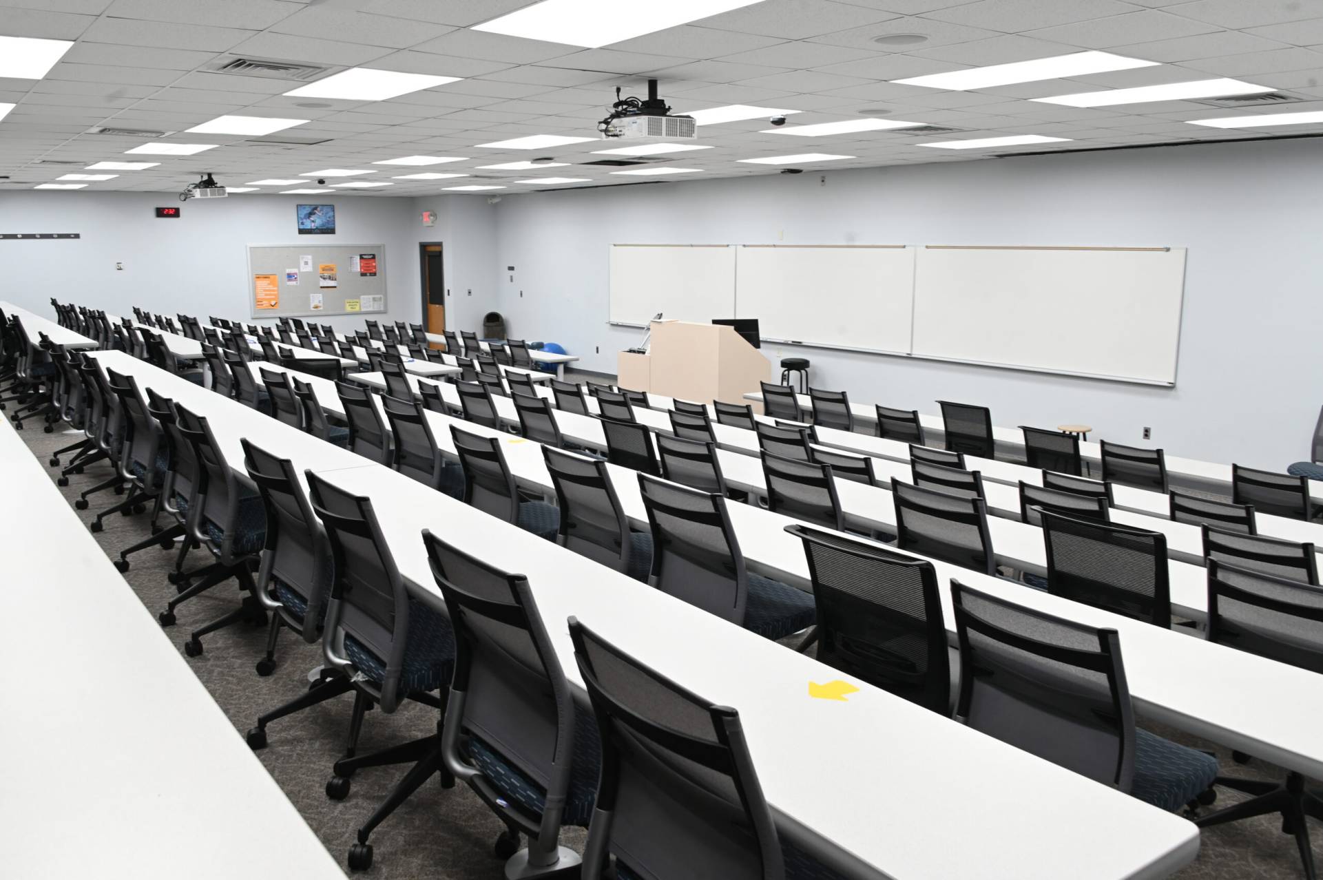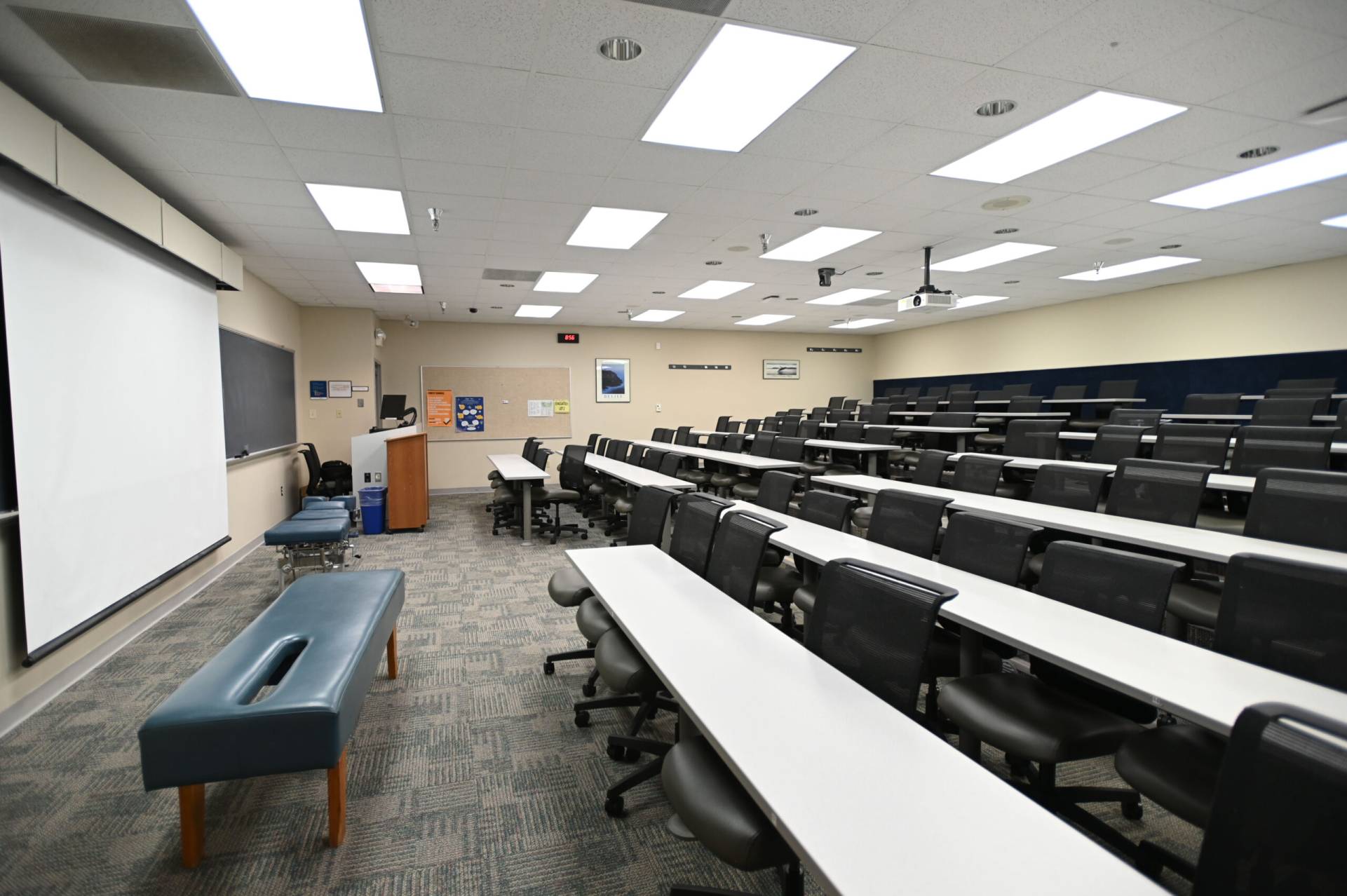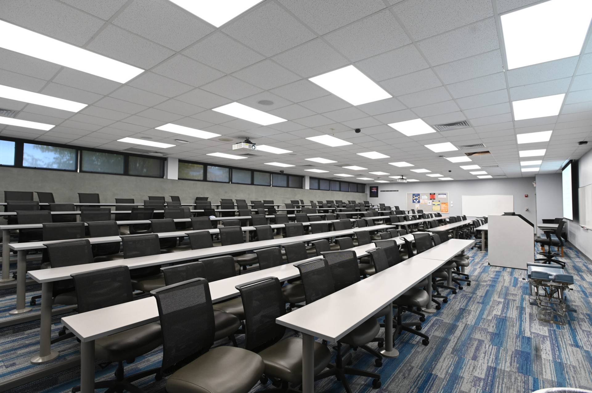 教室156 A和B也可出租。 156A可舒适地容纳147人,而156B最多可容纳173人。 两间客房都配备了你可能需要的所有设备,包括苹果电视、电脑、连接外部设备、图像相机、投影仪、屏幕、扬声器、无线麦克风和免费wi-fi接入。 教室里允许有食物和饮料。 最后,每个教室都有自己的私人入口,方便地靠近停车场和洗手间。 下一堂课一切都准备好了!