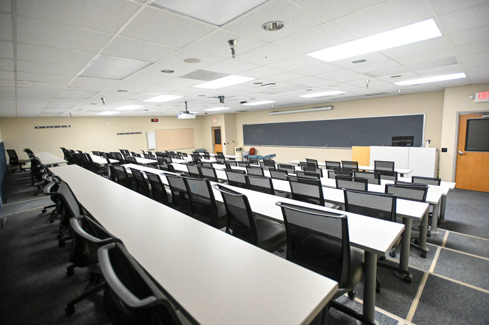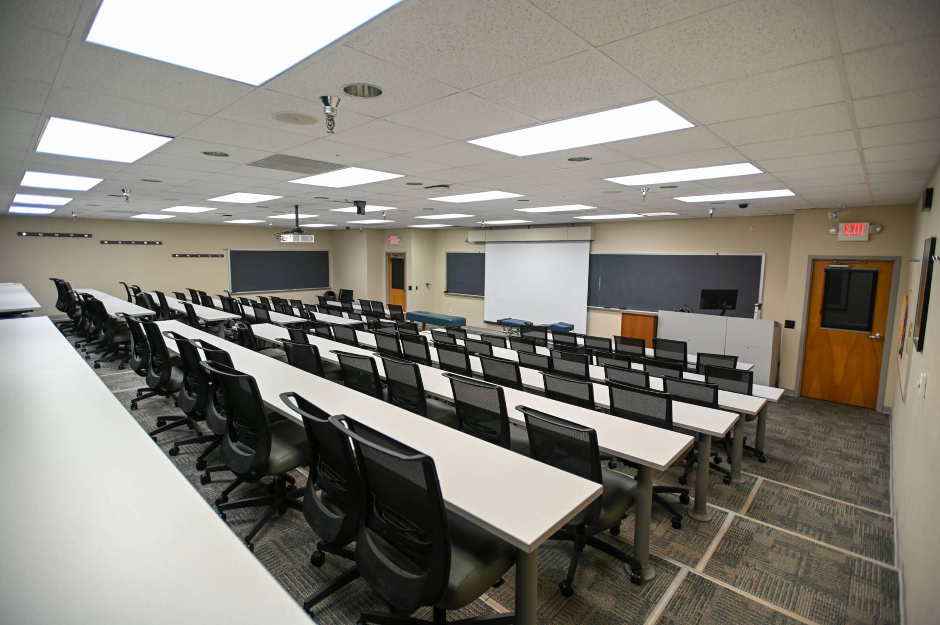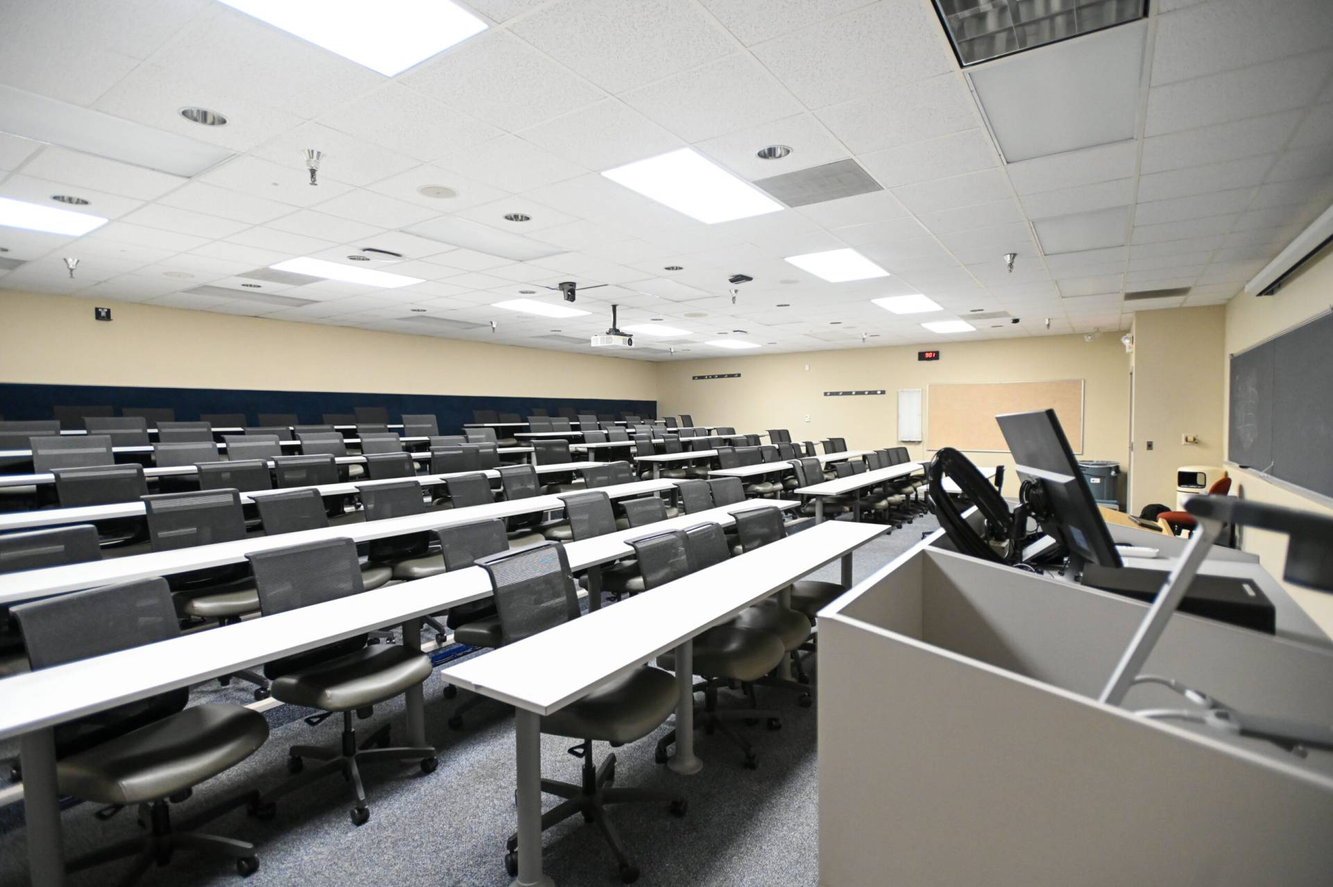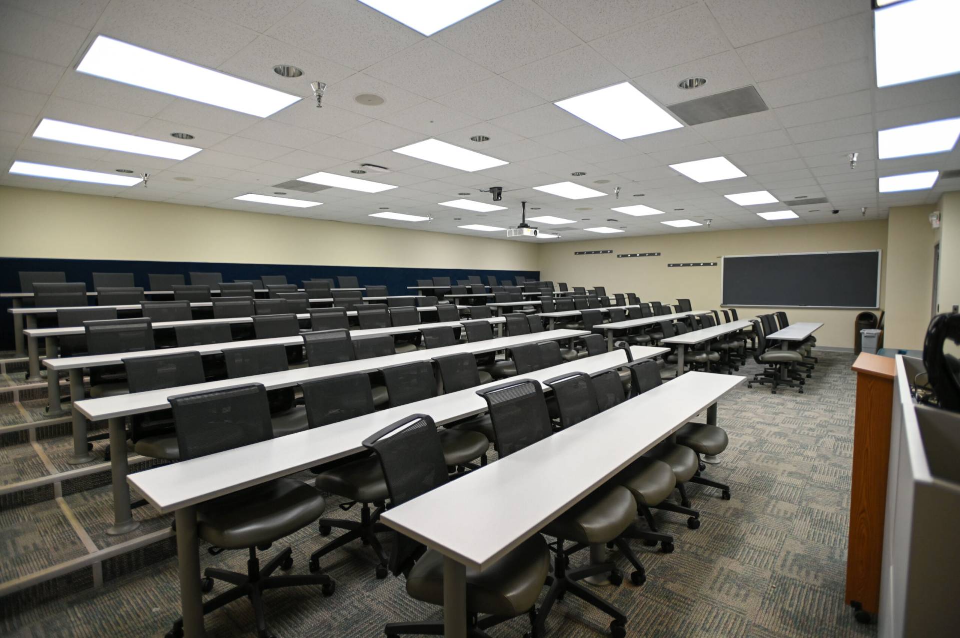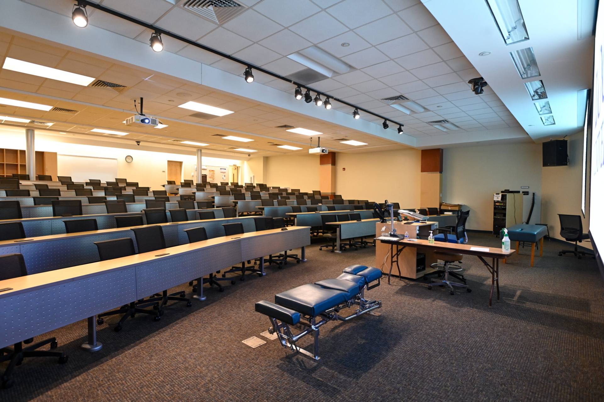 教室156 A和B也可出租。 156A可舒适地容纳147人,而156B最多可容纳173人。 两间客房都配备了你可能需要的所有设备,包括苹果电视、电脑、连接外部设备、图像相机、投影仪、屏幕、扬声器、无线麦克风和免费wi-fi接入。 教室里允许有食物和饮料。 最后,每个教室都有自己的私人入口,方便地靠近停车场和洗手间。 下一堂课一切都准备好了!